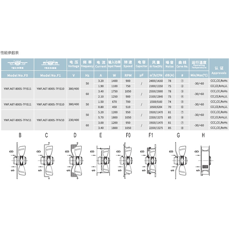 1. YWF.A6T-800S-5FISP0全新馬爾微光三木外轉子軸流風機
